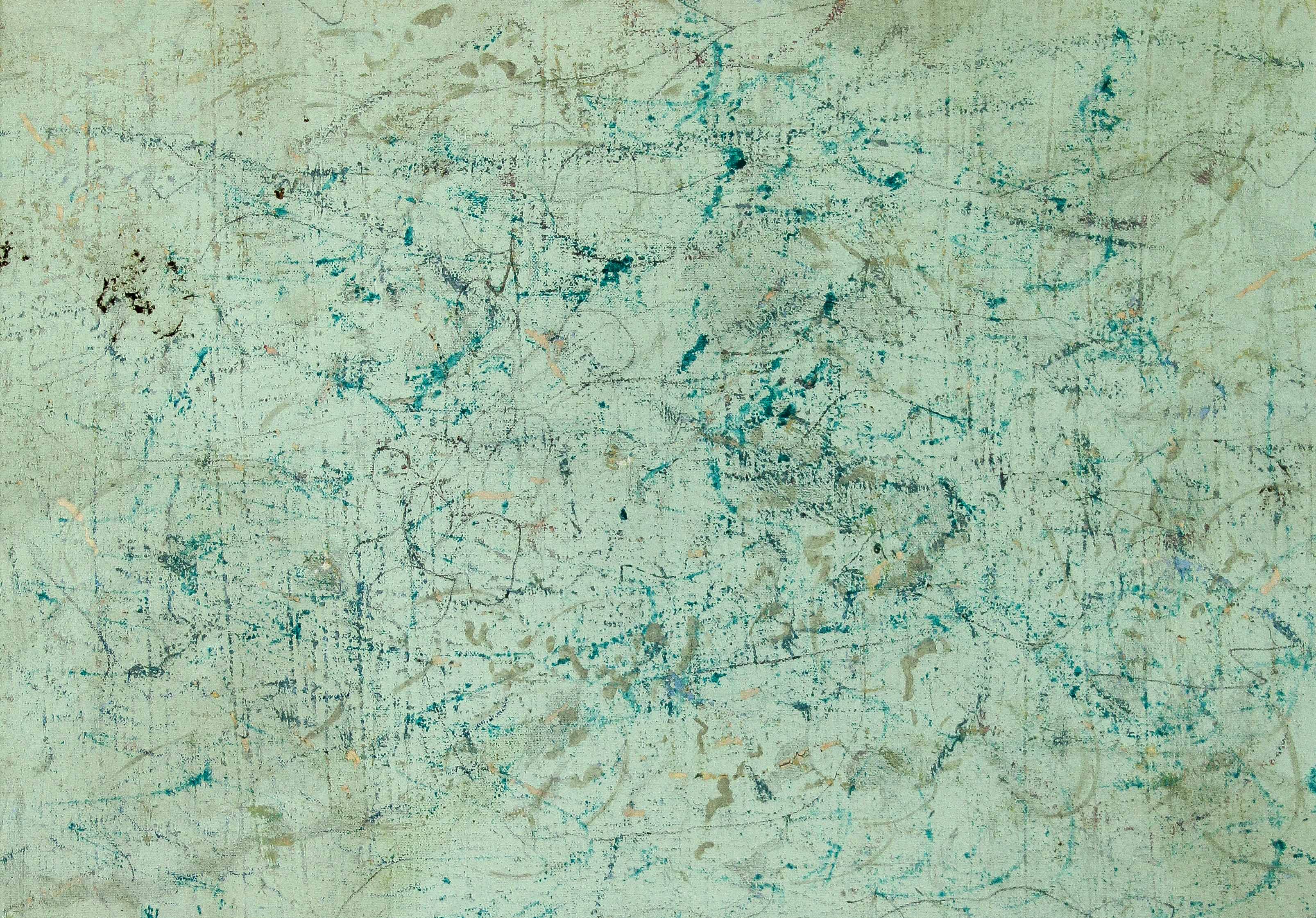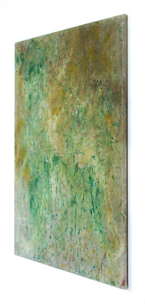 Regenver-Tersfo Blarwer, 2024. Acrylic, oil, chalk, pastel, pencil, salt, on canvas, 38x18cm