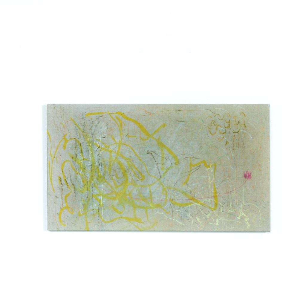 Untitled # 1, 2023. Acrylic, oil, pastel, and pencil on canvas, 16×26.9cm